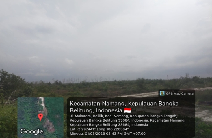 Informasi yang dihimpun dari berbagai sumber di lapangan menyebutkan, aktivitas perkebunan kelapa sawit tersebut berada di wilayah perbatasan Desa Belilik dan Desa Jelutung, Kabupaten Bangka Tengah. Lahan yang kini telah ditanami sawit itu disebut-sebut berada di kawasan Hutan Lindung (HL) yang juga berfungsi sebagai daerah resapan air laut.