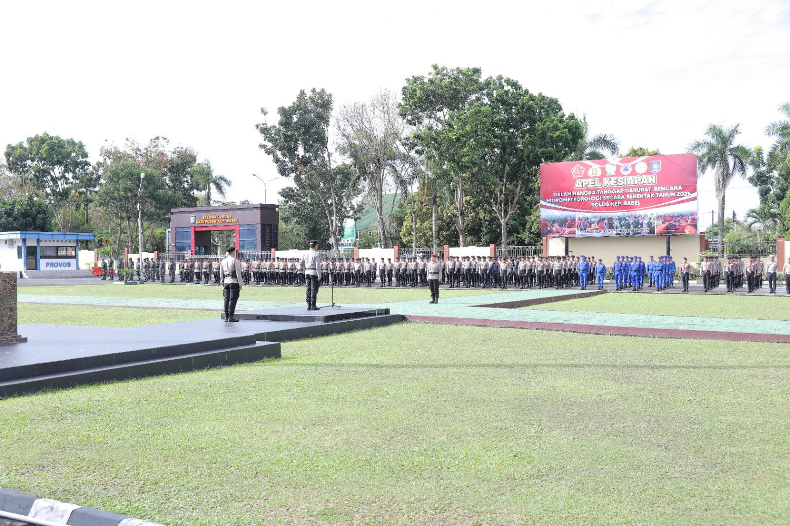 Sementara itu, Kapolda Babel Irjen Pol Viktor T. Sihombing, bertindak sebagai pemimpin apel menyampaikan bahwa apel kesiapsiagaan ini dilaksanakan serentak secara nasional, sebagai bentuk koordinasi lintas sektor dalam menghadapi fenomena perubahan iklim dan cuaca ekstrem.