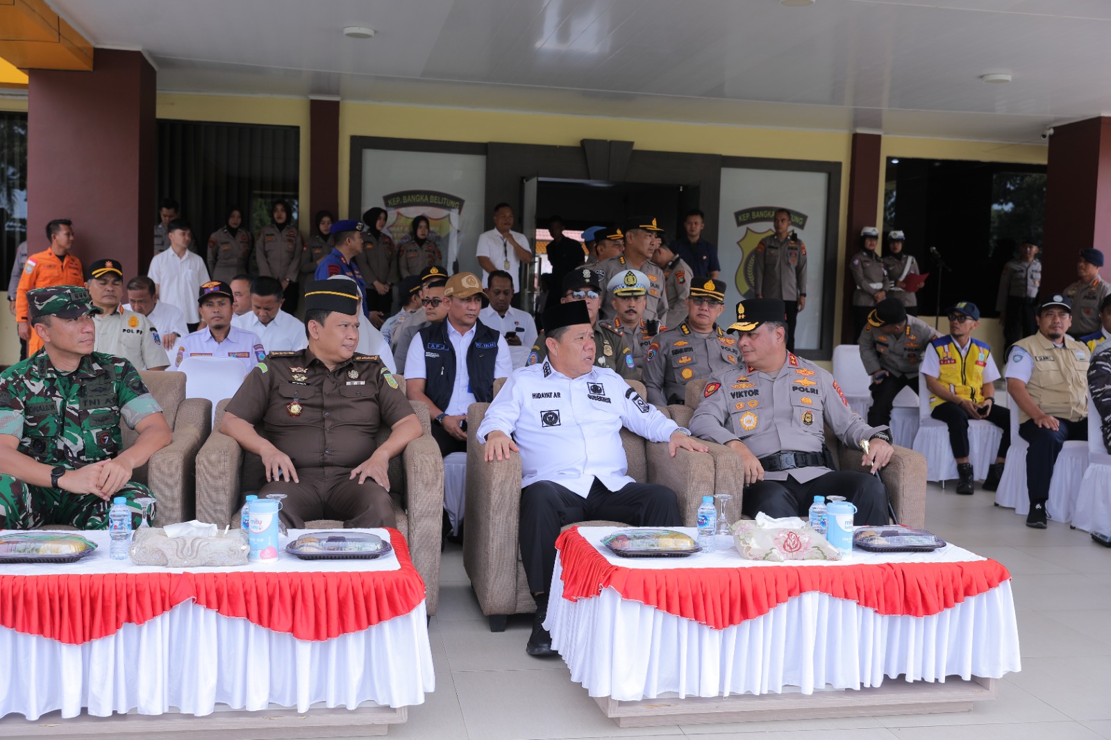 SUARAMELAYU.CO.ID, PANGKALPINANG – Gubernur Kepulauan Bangka Belitung (Kep. Babel), Hidayat Arsani, mengikuti apel kesiapsiagaan tanggap darurat bencana hidrometeorologi, yang bertujuan untuk meningkatkan kesiapsiagaan dan kesadaran masyarakat terhadap potensi bencana hidrometeorologi di Lobi Depan Kepolisian Daerah (Polda) Kep. Babel, Rabu (6/11/2025).