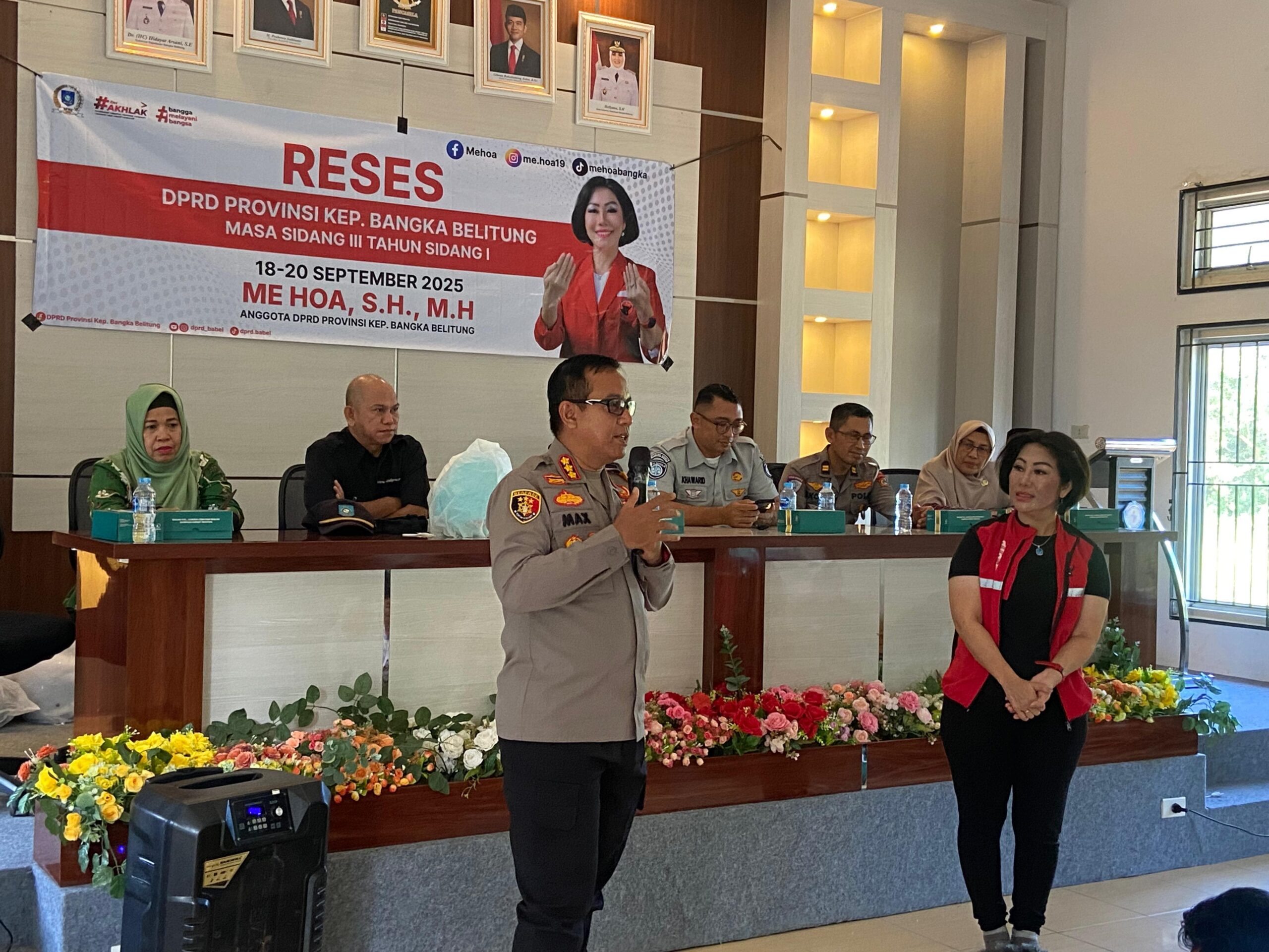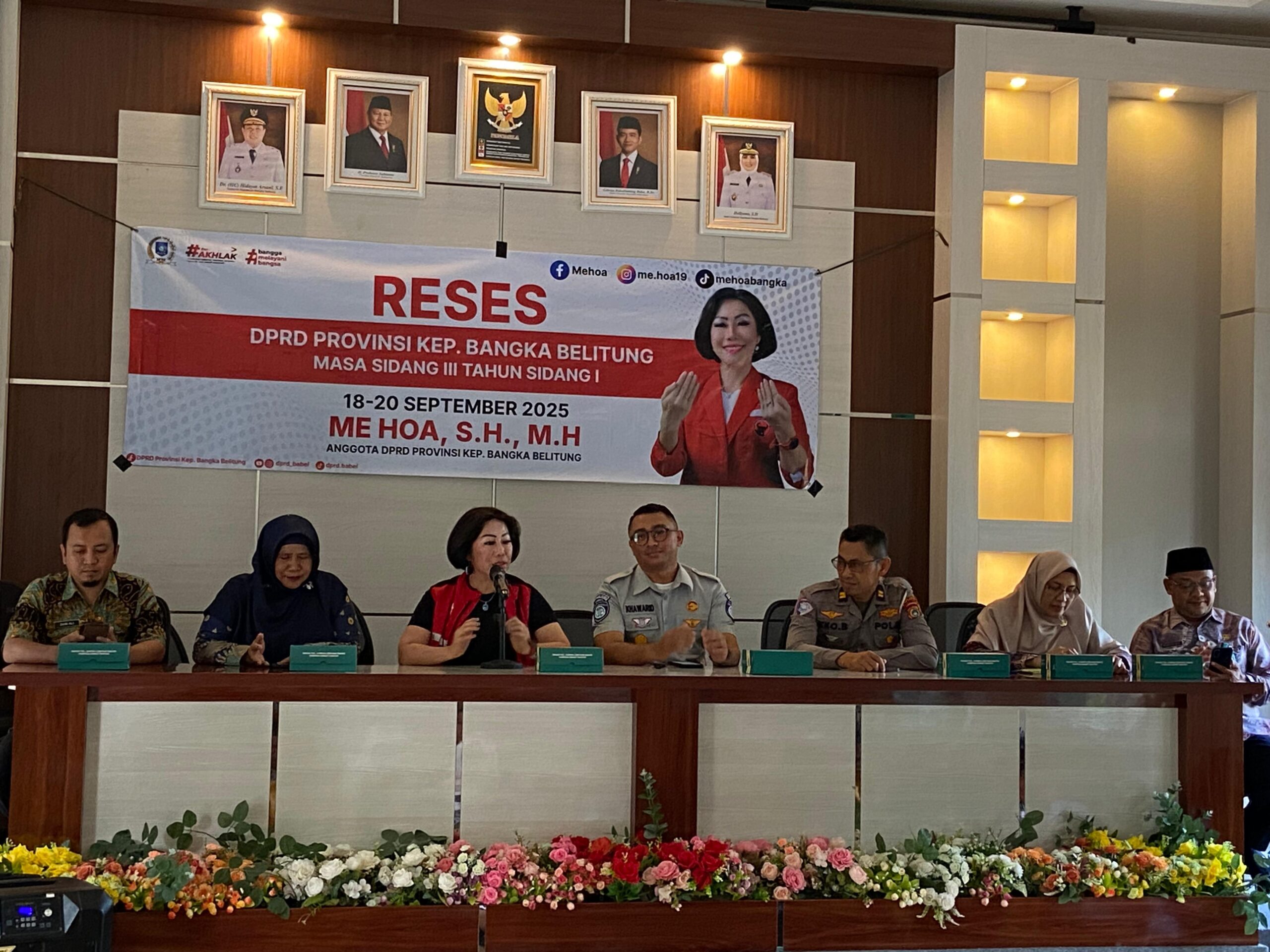 SUARAMELAYU.CO.ID, PANGKALAN BARU–- Wakil Ketua Komisi IV DPRD Provinsi Kepulauan Bangka Belitung (Babel) dari Daerah Pemilihan (Dapil) Bangka Tengah, Me Hoa menggelar kegiatan reses di SMKN 1 Pangkalanbaru, Kabupaten Bangka Tengah, Kamis (18/9/2025).