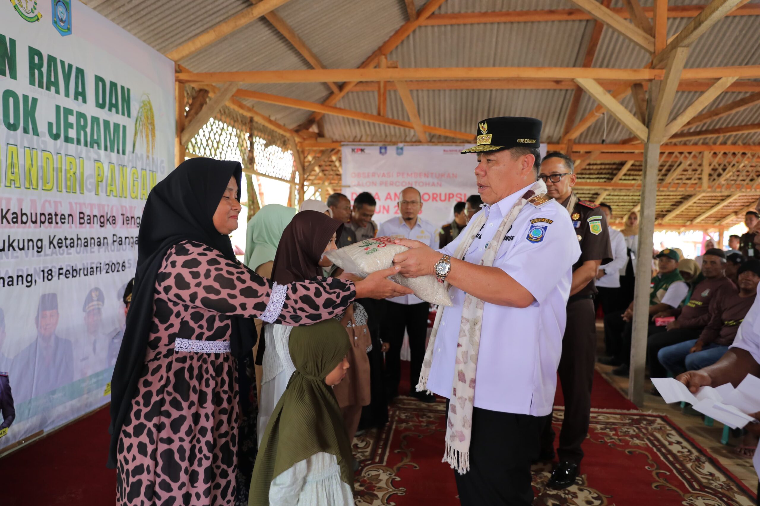 SUARAMELAYU.CO.ID, BANGKA TENGAH — Komitmen memperkuat ketahanan pangan daerah kembali ditegaskan Gubernur Kepulauan Bangka Belitung (Babel), Hidayat Arsani, saat menghadiri Panen Raya dan Murok Jerami Program Jaksa Mandiri Pangan yang diinisiasi Kejaksaan Tinggi Bangka Belitung di Saung Desa Namang, Rabu (18/2/2026).