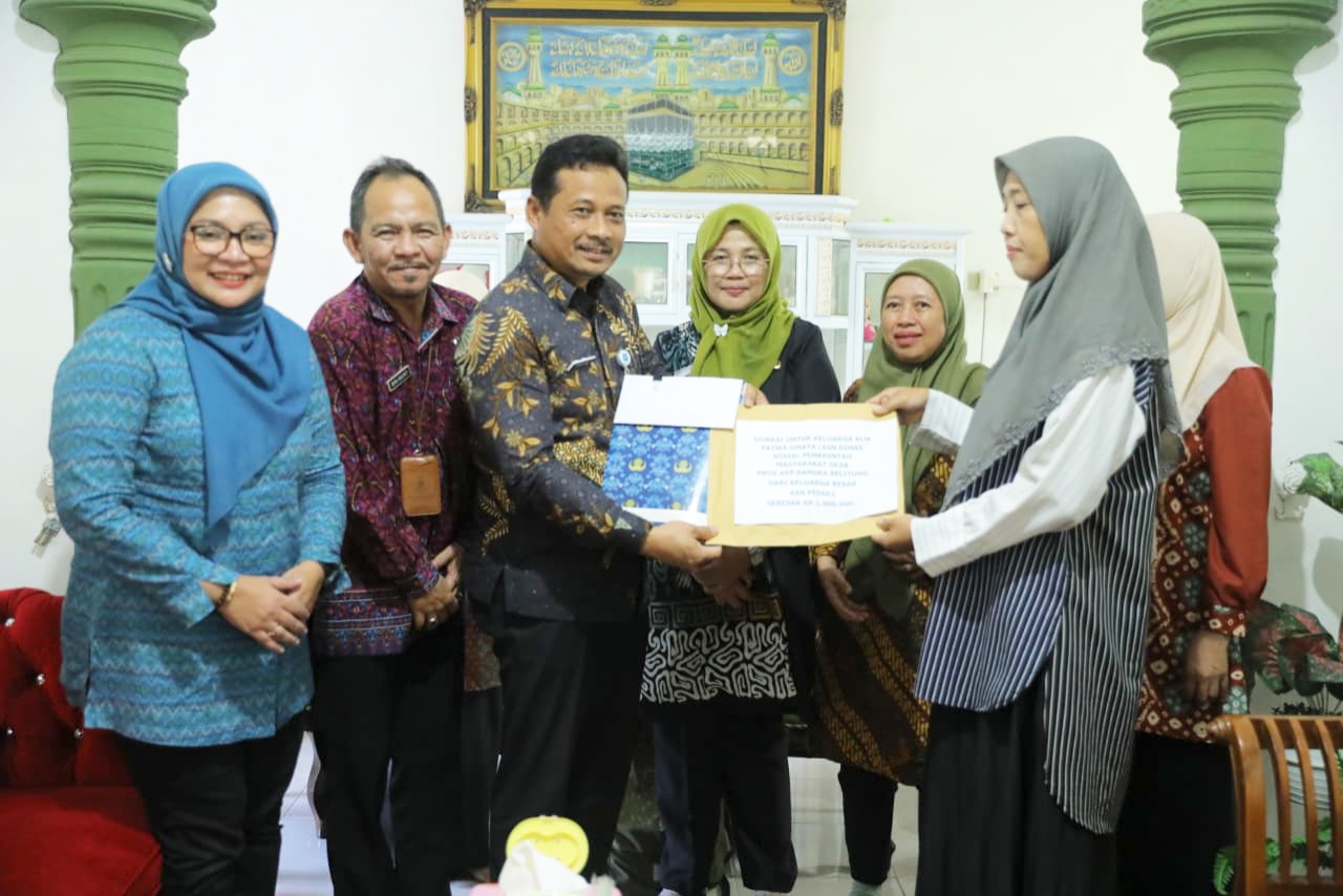 Dalam kunjungan pada Kamis (16/10/2025) siang tersebut, Pj Sekda Fery menyerahkan uang santunan dari ASN Peduli Babel, KORPRI, dan BPJS Tenaker kepada ahli waris alm Fatwa senilai Rp50.900.000, dengan rincian ASN Peduli Rp.3.900.000; KORPRI Rp5.000.000, dan BPJS Tenaker Rp.42.000.000.